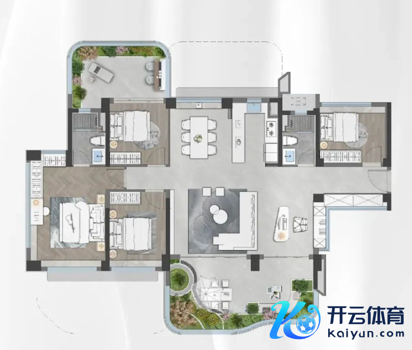 给行家看下它逆天的110平的户型,110平的户型实用率139%,能作念到4+1房两卫还带露台。
